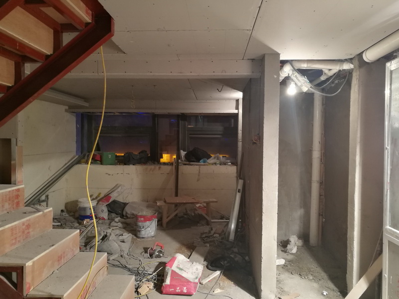 一层钢结构搭建完成后大家一起感受现场尺度:一层后面夹层由于下面有过梁,所以只做仓库和操作间。