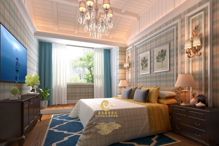 青岛美式乡村风格装修设计-叠拼别墅主卧室